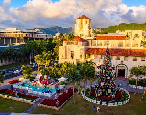 El centro de Honolulu cobra vida con espectaculares juegos de luces, decoraciones festivas y un enorme árbol de Navidad en el Honolulu Hale. El evento anual incluye un desfile, atracciones para niños y puestos de comida.